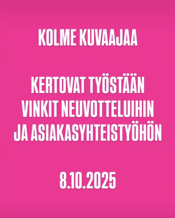 Jäsenten pyynnöstä: Kolme kuvaajaa ja neuvotteluvinkit Tällaista on toivottu useaan otteeseen. Terästä neuvottelutaitojasi ja inspiroidu kollegoiden kuvista! Keskiviikko 8.10.2025 klo […]